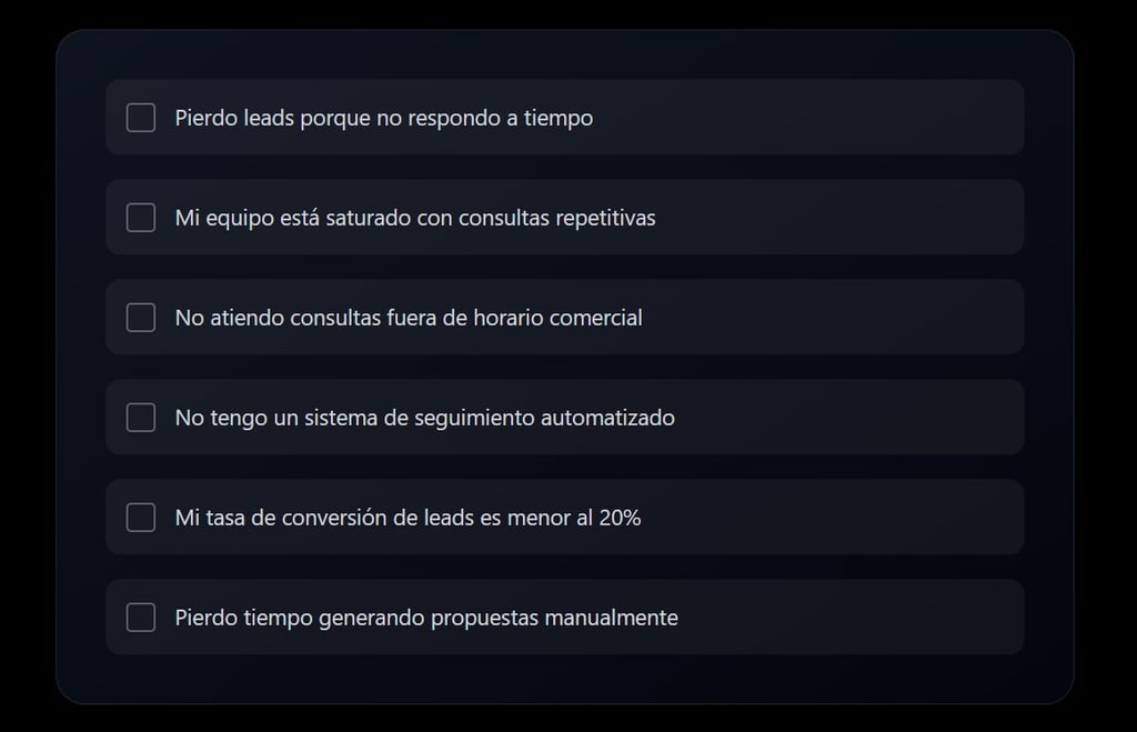 Cada día que pasa sin optimizar tu proceso de ventas, es dinero que dejas sobre la mesa. La pregunta no es si necesitas automatizar, sino cuánto más vas a esperar.