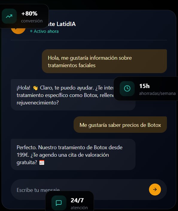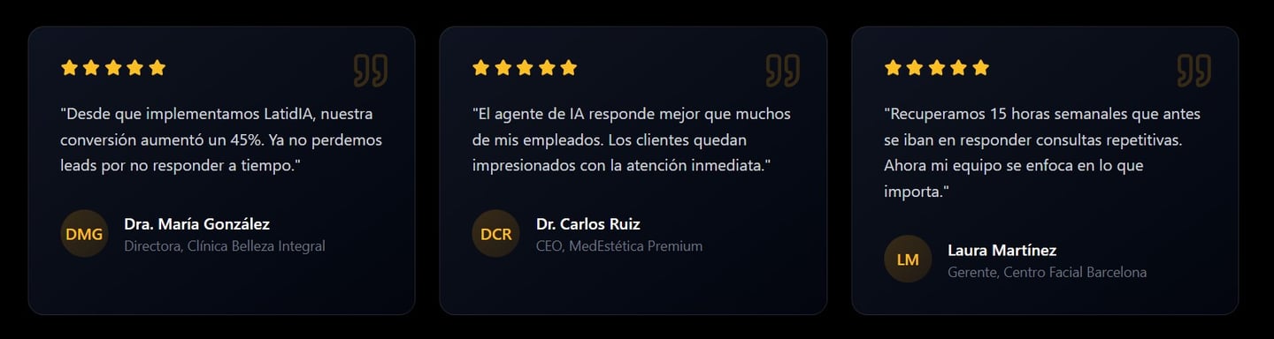 Absolutamente. Nuestros agentes están entrenados específicamente para el sector de medicina estética, entienden terminología médica, y responden de manera natural y empática. Los clientes a menudo no notan que están hablando con IA.